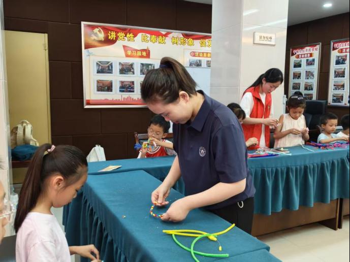 在学院团委书记赵方方的带领下,志愿服务队开展“扭扭棒变变变”手工创作活动,鼓励小朋友们用扭扭棒制作“花朵”、“皇冠”、“手环”等各种手工作品,不仅锻炼了动手能力,更激发了小朋友们的创造力。