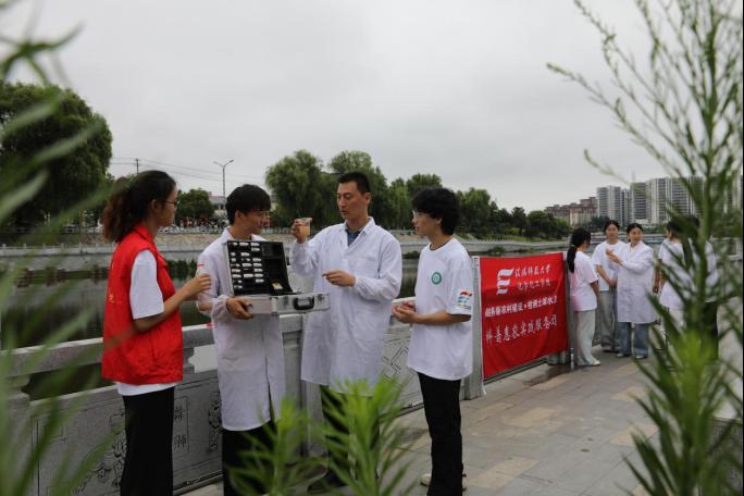 我院实践团分别深入信阳市郝堂村、睡仙桥、商城县城关镇,发挥专业优势,在学院专业老师的指导下,精准选取水流中流处作为采样点,规避河底、河岸淤泥与悬浮物干扰,采集水样后,规范操作,获取水质指标数据。通过溶解氧、总氮、总磷等试剂规范检测水质,同步实施土壤取样分析,建立污染监测数据链。对村内饮用水源、灌溉河道及农田土壤进行系统采样,检测pH值、重金属含量等关键指标,分析水土健康状况。针对检测结果,团队提出科学施肥、水源保护等建议。
