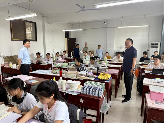 随后,学院领导班子前往教五楼考研自习室,为留校考研学生加油鼓劲,慰问了解学生学习进度、生活需求与困难,同时准备了消暑物资,为学生送上最温暖的助力、最贴心的关怀,希望同学们在考研征途过程中锚定目标、精进方法;劳逸结合、强健体魄;主动沟通、调整心态,以良好的身体状态和精神面貌备战考研。(ok138cn太阳集团529翟成辉供稿 冷向宇审稿 曲剧审核)