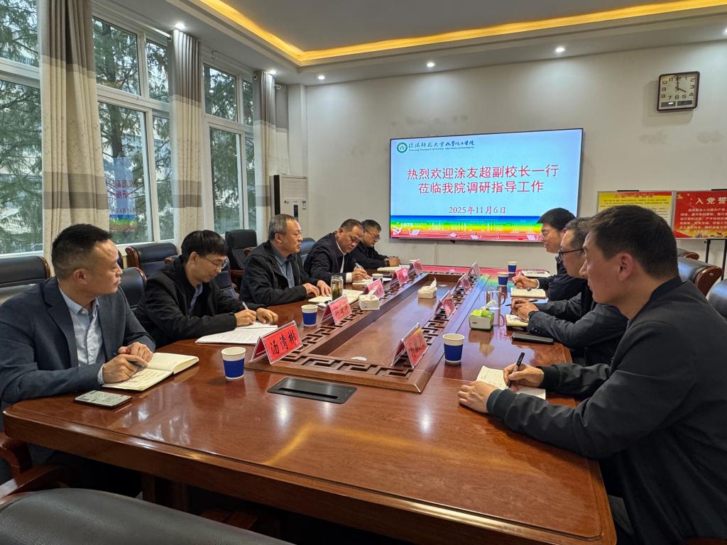 11月6日,副校长涂友超带领科技处及学报编辑部相关负责人莅临ok138cn太阳集团529调研指导科研工作;学院党委书记吴志伟、院长曹俊涛、学院教师代表参加调研。