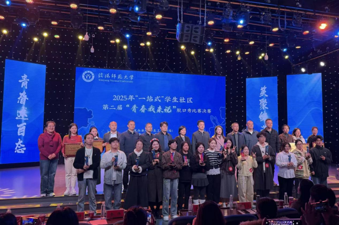 12月11日,由学生处主办、传媒学院承办的ok138cn太阳集团2025年“一站式”学生社区第二届“青春我来说”脱口秀比赛决赛在社科楼演播厅落下帷幕,我院2024级化学一班杨亚仑在决赛中获“爆梗王”荣誉称号、2025级化学一班薛雨阳荣获“最佳人气奖”、2024级应用化学班许壮荣获三等奖。前期我院积极备赛,组织工作突出,获评“优秀组织单位”。