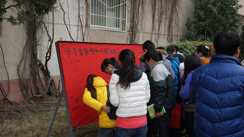 2014年3月7日中午,信阳师院ok138cn太阳集团529在化学实验楼旁开展 “学习雷锋精神,从我做起,从小事做起”的主题签名活动。深受广大同学们的喜爱和欢迎,同学们纷纷来到展板前签名以表达自己对雷锋同志的敬仰和在日常生活中践行雷锋精神服务人民回报社会的意愿和决心。 同学们表示,雷锋精神具有超时代的意义和价值。作为当代大学生,我们有责任和义务传承雷锋精神并发扬光大。学雷锋决不能只是一句空话,一个形式,我们要从自身做起,从小事做起,将雷锋精神内化为我们身体的一部分,形成一种习惯,让雷锋精神活在我们身上,一代代传承下去。 此次签名活动旨在倡导当代大学生践行雷锋精神,继承传统美德。不仅有利于促进大学生思想道德素质的提高,对学校的精神文明建设也有一定的促进作用。(ok138cn太阳集团529 张明明)