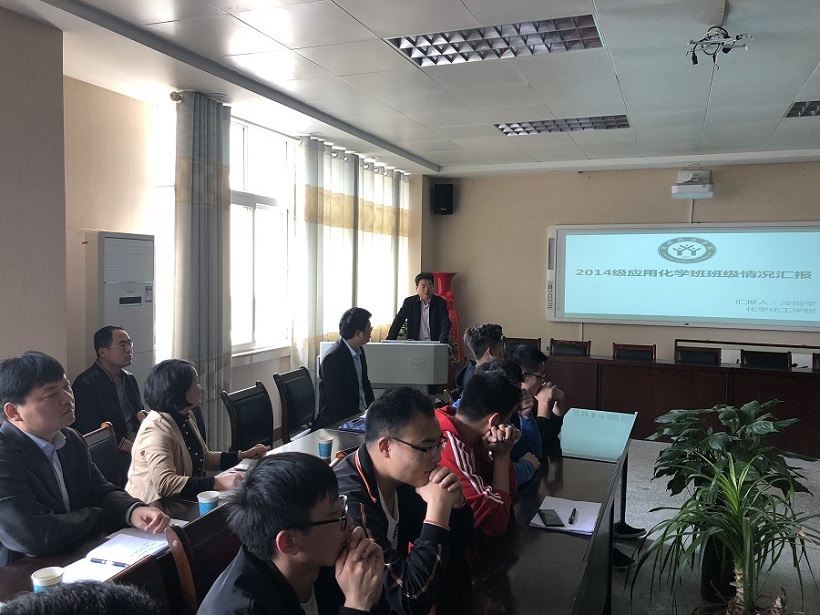 4月26日,副校长齐城在化学实验楼407参加ok138cn太阳集团529辅导员冷向宇的“班情熟知”检查活动。学生处副处长赵晨、ok138cn太阳集团529党委书记郭鹏和学院辅导员现场观摩。我院党委副书记吴志伟主持检查活动。