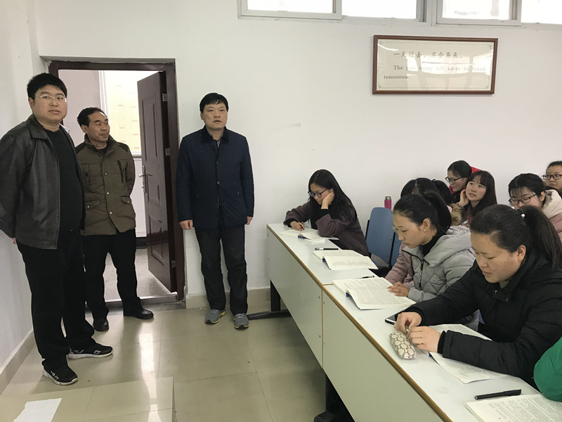 党政班子成员在教室外或驻足聆听,或细心察看,对教师到岗、学生到课情况进行了实地检查。其中马稳老师通过微信面对面建群的方式对到课学生进行实时点名,效率高,成效好,赢得了学院党政领导班子的一致好评。