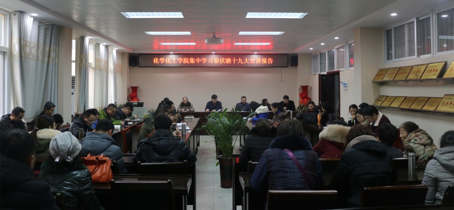 元月2日下午,ok138cn太阳集团529在化学实验楼会议室集中学习省委书记谢伏瞻在河南师范大学宣讲十九大精神的报告。院长井强山、副院长骆定法、归风铁、刘鹏,党委副书记吴志伟与全体教职工共同聆听了此次报告。