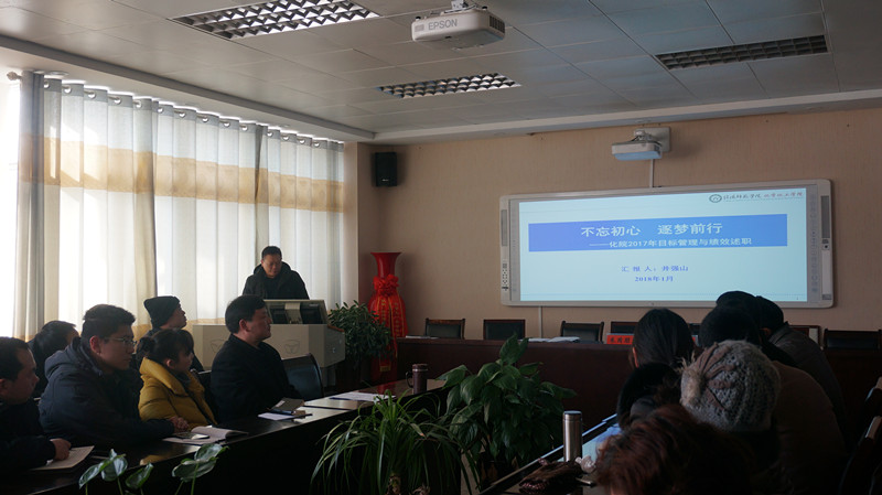 1月30日下午,ok138cn太阳集团529在化学实验楼407会议室召开领导班子2017年度考核述评大会。由校团委副书记朱国朋、人事处人事科科长雷梁组成的校第四考核组应邀出席会议,我院处级领导班子成员与全体教职工参加会议。会议由学院党委书记郭鹏主持。