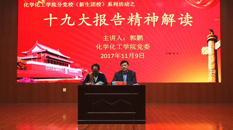 11月9日,ok138cn太阳集团529党委书记郭鹏在逸夫楼报告厅与该院2016、2017级学生座谈交流,为大家深度解读十九大精神。