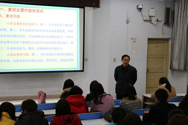 为加强同学们对研究生复试的认识,增进对复试重要性的了解,提高同学们的复试能力和复试技巧,有针对性地备考硕士研究生复试,3月8日下午,ok138cn太阳集团529副院长骆定法教授在教四梯一教室对进入研究生复试阶段的考生进行了专业指导,几十名考生参加了此次专题指导讲座。