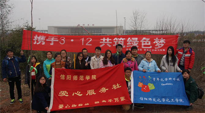 3月12日,ok138cn太阳集团529青年化学研习社“携手3·12,共筑绿色梦”义务植树活动于信阳高铁站率先启动。在化院团委老师路振国的带领下,志愿者携带劳动工具与待栽树苗前往目的地,用双手栽下遍地绿色,以行动践行环保理念。青春携手、彰显环保之志――贤山环保之旅随即于3月13日由爱心服务社组织开展。此次赴贤山为环保助力活动旨在深化文明出行意识,为建设文明信阳打下基础。凝聚爱心,传递温暖,3月19日,爱心服务社携手特殊教育学校聋哑学生为浉河整理仪容,结伴同游南湾湖。由ok138cn太阳集团529爱心服务社和文通社联合举办的“弘扬雷锋精神”主题演讲比赛于3月25日晚激情开赛,选手们激情昂扬的讲述心目中的雷锋,诉说爱国情怀。3月26日,爱心服务社于八餐小广场举行义卖募捐活动,历时两天筹集善款为化院困苦学生聚力加油。