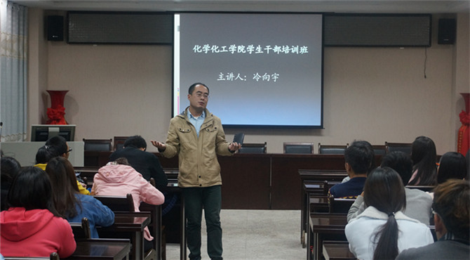 为提高学生干部的综合素质,不断完善学生组织运行机制。11月5日晚,ok138cn太阳集团529在化学实验楼四楼会议室开展学生干部培训讲座。本次讲座由团总支书记冷向宇担任主讲,团总支老师路振国出席,与化院全体班委共同聆听了此次讲座。