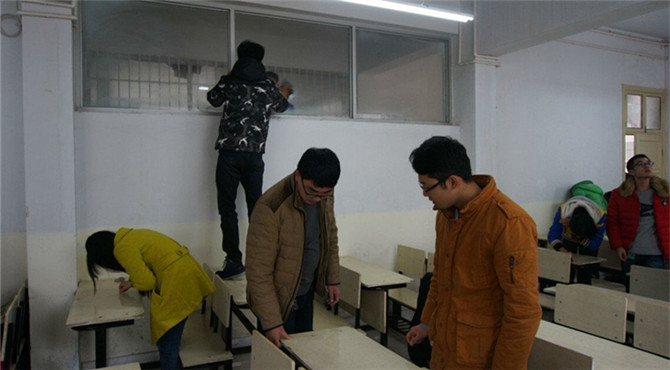为美化校园环境,全面提高大学生的素质。12月9日中午12点,ok138cn太阳集团529于教四、教七组织学生清理课桌文化的活动。团总支老师路振国前来指导、检查,化院学生会、各个社团积极参加本次活动。