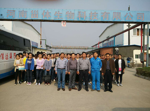 在河南甾体生物科技有限公司,杜总热情接待了化院师生们,深入浅出地向同学们介绍了公司发展历程和产品生产研发概况,安排技术人员带领同学们参观工厂的各个区域并进行详细的讲解。在生产车间,由于反应流程和设备都是课本上的专业知识,同学们更是兴趣倍增,听得津津有味,不时还会向技术人员提出问题,都得到了耐心解答。