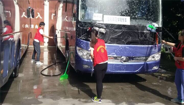 为弘扬雷锋志愿服务精神,营造一个良好的乘车环境,6月5日,ok138cn太阳集团529爱心服务社在正门组织开展“公益洗车”活动,组织社团成员义务清洗校车。