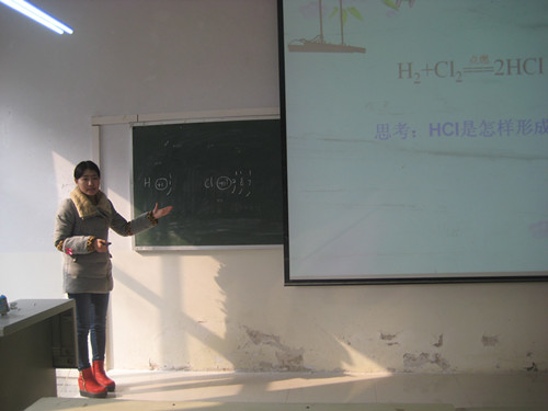 本次活动在教七楼303举行,我院书记周涛和副院长骆定法应邀参加。活动共分为两个环节,首先是师范生的课堂教学技能展示,2011级化学专业秦纪尧、杨晴晴同学分别讲授了“摩尔”、“化学键”内容,两位同学在课堂上娓娓道来,给同学们带进了一个神奇的微观世界。随后马豪老师作了精彩点评,周书记和骆院长也给以补充并提出自己的看法建议,课后,同学们进行了深入地探讨交流,一致认为获益匪浅,活动拓宽了知识面,提高了师范技能。