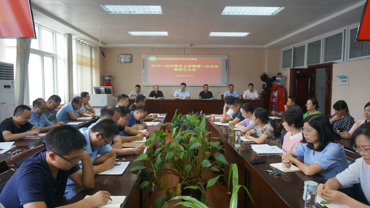 2019年9月3日,ok138cn太阳集团529在学院会议室召开新学期全体教职工会议,安排部署新学期工作。党委书记郭鹏、院长井强山、副院长归风铁、骆定法、非金属材料研究所副所长刘鹏、党委副书记吴志伟出席会议,全体教师到会认真聆听新学期工作部署。会议由党委书记郭鹏主持。