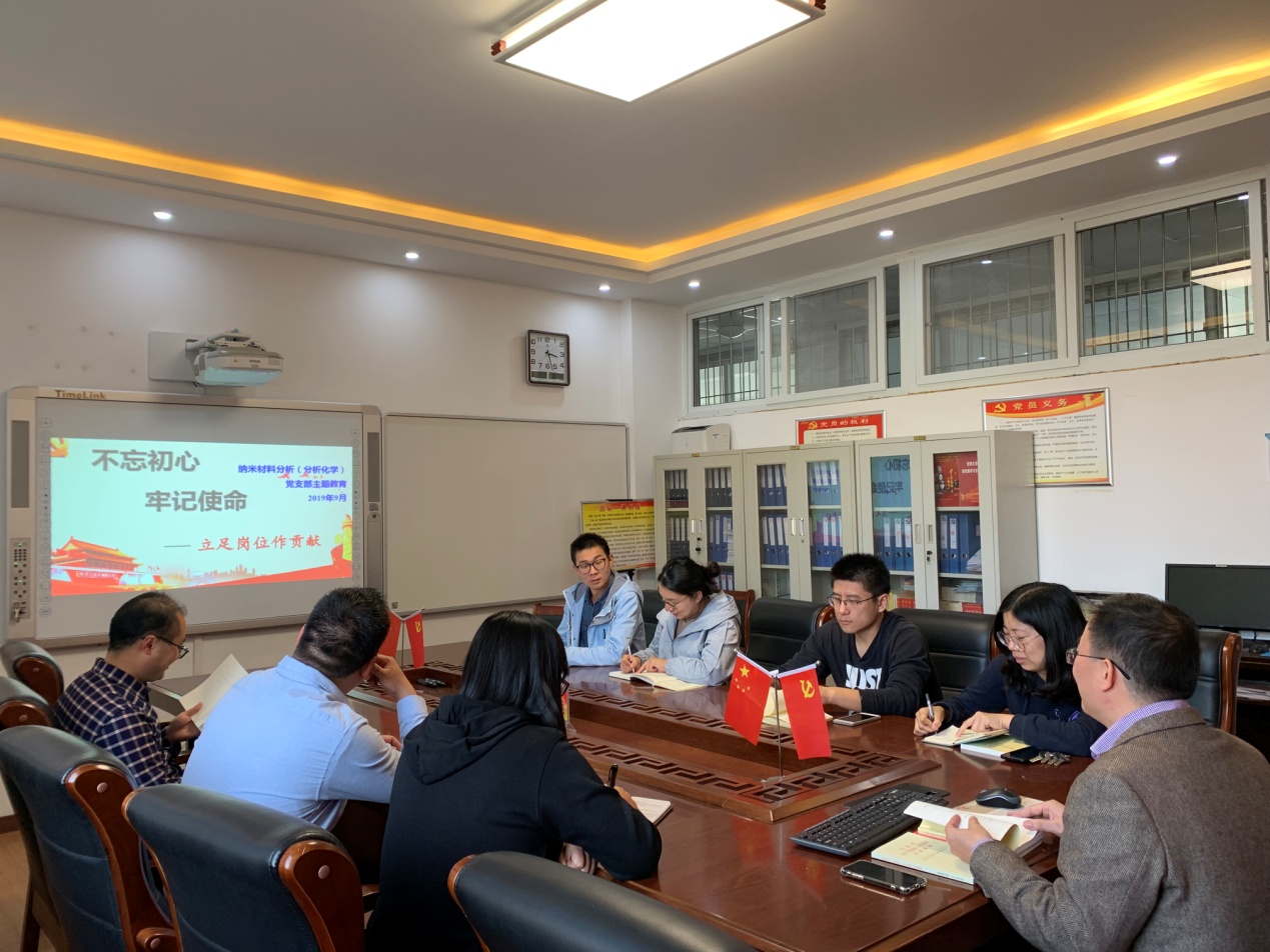 分析化学党支部有8位党员参加本次支部活动。支部书记黄克靖领学了《习近平关于“不忘初心、牢记使命”重要论述摘编》和《中国共产党党内重要法规汇编》等相关学习材料。随后,与会教师党员就支部党建工作质量提升、支部活动的形式、支部活动如何支撑教学科研等方面进行了热烈的讨论。大家表示,将积极发挥党员先锋模范作用,以饱满的精神状态投入到教学、科研和管理工作中去。