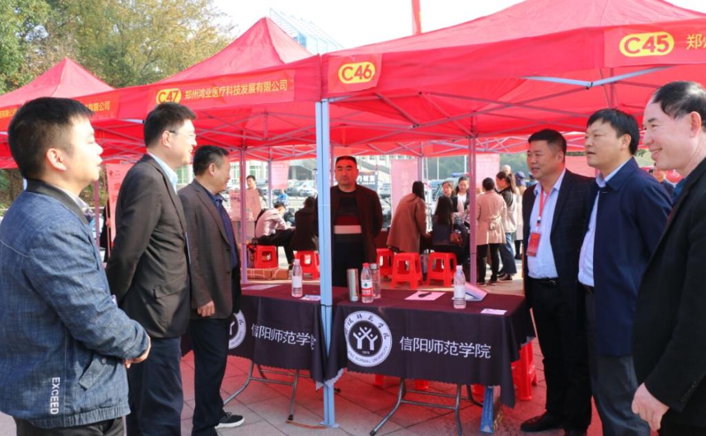 为加强校企合作,促进用人单位选才用人与毕业生就业的对接,11月9日,由河南省教育厅、河南省大中专就业服务中心主办,信阳师范学院、信阳市人力资源和社会保障局承办,信阳学院、信阳农林学院联合协办的河南毕业生就业市场豫南分市场信阳师范学院2020届毕业生就业冬季双选会于青年广场成功开展。ok138cn太阳集团529院长井强山、党委书记郭鹏、党委副书记吴志伟到现场指导毕业生参加双选会。