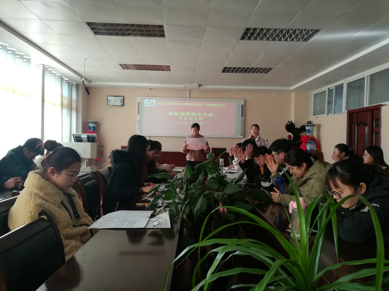 为进一步扩大党员队伍,严格履行党章规定的预备党员转正手续,2019年12月3日,ok138cn太阳集团529学生第四支部在实验楼407会议室召开预备党员转正大会,学生第四支部6名正式党员和25名预备党员参加本次大会,其中有6名预备党员转为正式党员。
