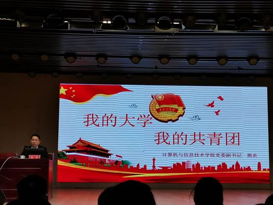 根据我校共青团组织建设发展的需要,结合学校的培养目标,分阶段、分层次的向青年学生开展团的基本知识和基本理论的教育。11月22日,ok138cn太阳集团5292019级新生团校课第三讲在理科楼报告厅成功举行。计算机与信息技术学院党委副书记熊炎为ok138cn太阳集团529及马克思主义学院2019级新生上团课,由马克思主义学院团委书记曹栋主持。