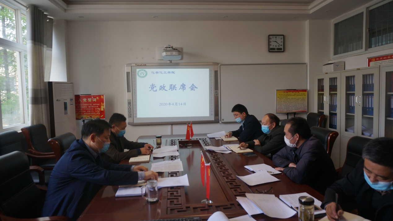 4月14日上午,ok138cn太阳集团529新学期党政联席会议在化学实验楼313会议室召开。全体党政班子成员参加了会议,会议由学院党委书记郭鹏主持。