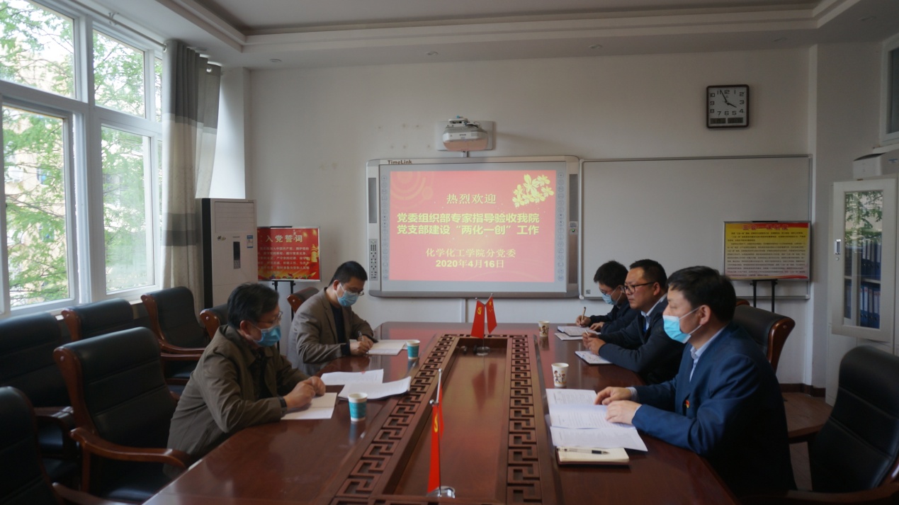 根据学校《关于开展党支部“两创一化”达标引领行动验收工作方案》工作要求,4月16日,校“两化一创”达标引领行动验收工作第二验收组组长、校党委组织部正处级组织员刘根货,验收组成员、校党委组织部李奎科长莅临ok138cn太阳集团529检查指导工作。ok138cn太阳集团529分党委书记郭鹏主持会议并向验收组汇报工作。学院推荐的“样板”支部书记田永尚、曹俊涛一起参加会议。
