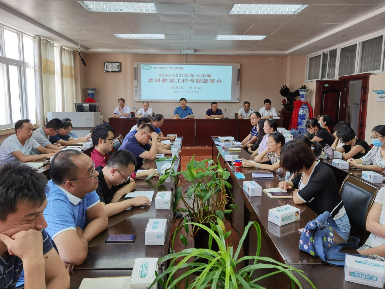 会上,分管本科教学副院长骆定法通报了疫情防控期间、暑假期间教育教学各项工作进展及教师获奖情况,对ok138cn太阳集团5292020年上半年线上教学工作进行总结,对暑期师范专业认证等重点工作进行回顾梳理,肯定了取得成绩,指出了存在不足,明确了努力方向。疫情防控常态化新形势下,对照2020-2021学年新学期学校各项教学工作安排,骆定法对本学期学院本科教学工作提出新的要求。本学期教学工作主要围绕专业课程思政建设、化学师范专业认证工作、教学成果奖培育、省一流专业申报、精品在线课程建设、一流课程建设,教改教学工程项目论证申报、2021届教育实习、考研升造指导服务等方面重点投入和展开。骆定法表示,要检查和落实各项教学资料、实验器材、毕业生回访,以备顺利通过化学师范专业认证自评和专家进校评估工作;鼓励各位老师建教学团队,申报教学成果奖、教改项目;大力推进优秀基层教学组织建设、合格基层教学组织达标验收;重视2021届本科毕业生学分审核预警;鼓励教师转变教学理念,重视日常教学管理,狠抓教育教学质量,认真负责将培养学生的创新创业的精神融入到教学工作中,努力提高人才培养质量。