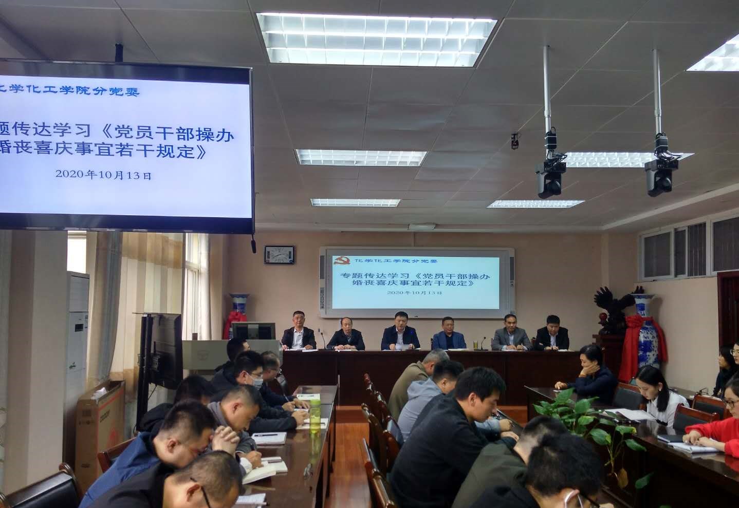 为认真贯彻落实中央八项规定精神,切实加强党员、干部、公职人员纪律约束,10月13日,ok138cn太阳集团529分党委在实验楼407报告厅召开全体教职工大会,集体学习《党员干部操办婚丧喜庆事宜若干规定(修订)》的通知文件。ok138cn太阳集团529全体教师集体参加学习。学习会由党委书记郭鹏主持。分党委纪检委员刘鹏针对文件精神进行宣讲、领学和解读。