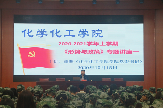 10月15日,ok138cn太阳集团529党委书记郭鹏在逸夫楼报告厅为青年学生开讲2020-2021学年上学期《形势与政策》课,2020级新生全体学生341人到课。
