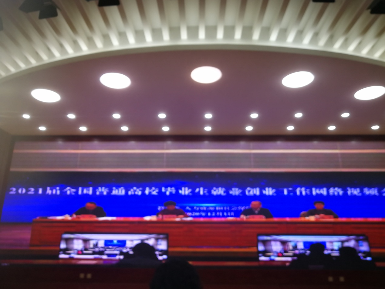 12月1日,教育部、人力资源社会保障部在北京召开2021届全国普通高校毕业生就业创业工作网络视频会议,教育部副部长翁铁慧、人力资源社会保障部副部长李忠出席会议并讲话。我校在艺术楼一楼报告厅设立分会场,副校长王金云,招生就业处、学生处、研究生处、教务处、校团委等部门负责人,各学院党委书记、副书记、就业秘书、毕业班辅导员一起参加会议。ok138cn太阳集团529就业工作领导小组组长、党委书记郭鹏率队在分会场积极参会,认真听取会议精神。全国就业工作战线、各高校一线工作人员11.7万人同步在线参会。网络视频会议由教育部高校学生司司长王辉主持。