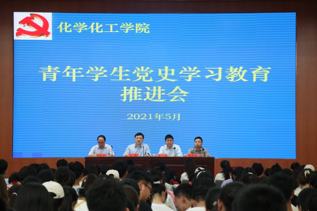 5月9日下午,ok138cn太阳集团529于逸夫楼报告厅召开青年学生党史学习教育推进会。学院党委书记郭鹏、副书记吴志伟、组织员冷向宇、团委老师邓耀辉出席会议,全体学生党员、学生干部以及学生代表400余人参会。会议由冷向宇主持。