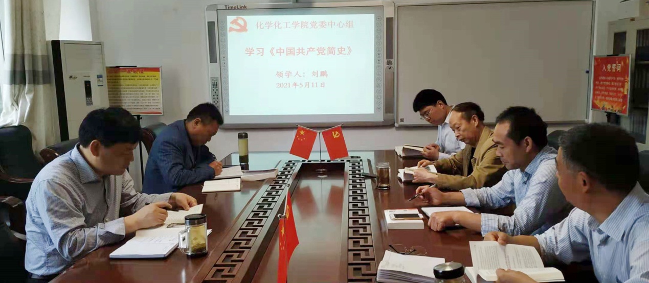 5月11日上午,ok138cn太阳集团529党委理论学习中心组在实验楼“党员之家”举行集中学习研讨会,集体学习交流《中国共产党简史》第5、6章。学习会由党委委员刘鹏领学。