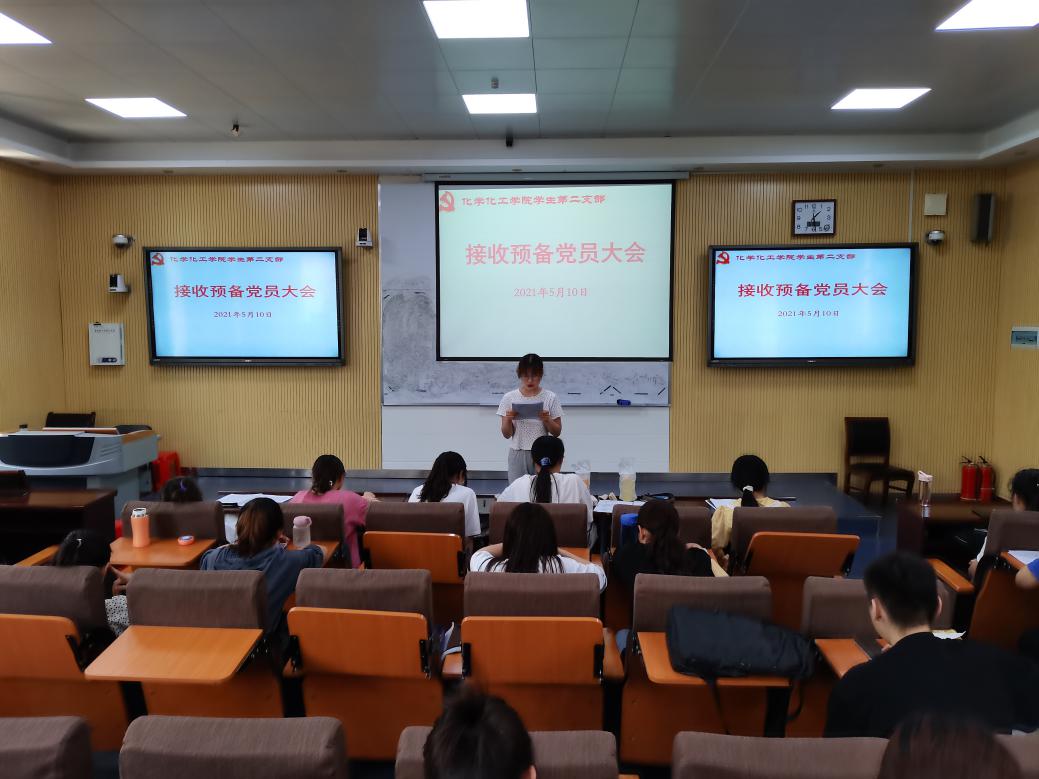 5月10日中午,ok138cn太阳集团529学生第二党支部在教四T2召开接收预备党员支部大会。第二党支部李梦瑶同志主持本次会议。