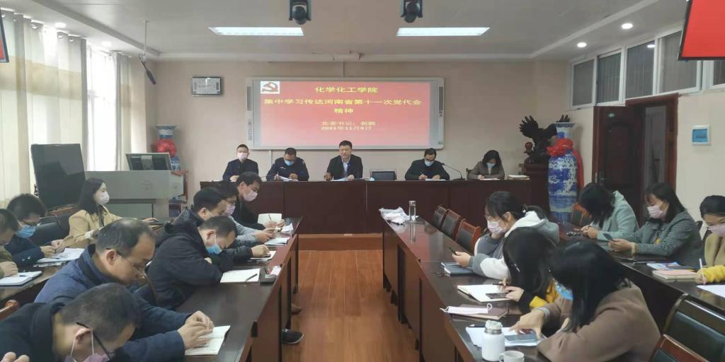 11月9日,ok138cn太阳集团529在化学楼407报告厅开展专题学习活动,集中传达学习贯彻落实中国共产党河南省第十一次代表大会精神。ok138cn太阳集团529全体教师集体参加学习。集中学习活动由学院党委书记郭鹏主持。