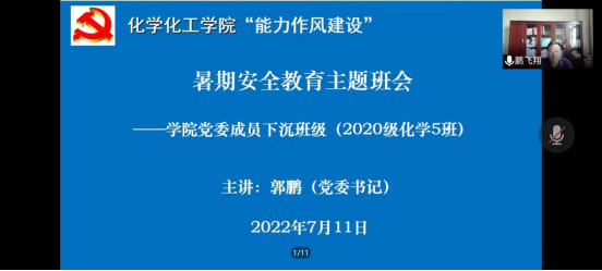 为进一步做好学生暑期安全教育工作,加强假期期间与学生的密切联系,ok138cn太阳集团529各班级在7月上旬陆续开展暑期安全教育主题线上班会,认真贯彻“安全第一,预防为主”原则,以“时时放心不下”的工作状态做好暑期学生安全教育工作。此次暑期安全教育工作受到了学院党委的高度重视,党委书记郭鹏、副书记曲剧、副院长于永生、党委委员朱建君等分别参加了所联系班级的班会活动。