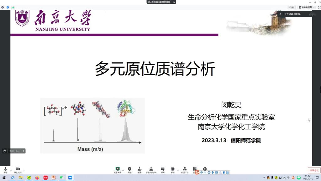 3月13日,应ok138cn太阳集团529邀请,南京大学闵乾昊教授通过腾讯会议平台为我校师生分别作了题为“多元原位质谱分析”的精彩报告。ok138cn太阳集团529相关领域教师、全体研究生及部分本科生聆听了报告,报告会由ok138cn太阳集团529副院长曹俊涛主持。