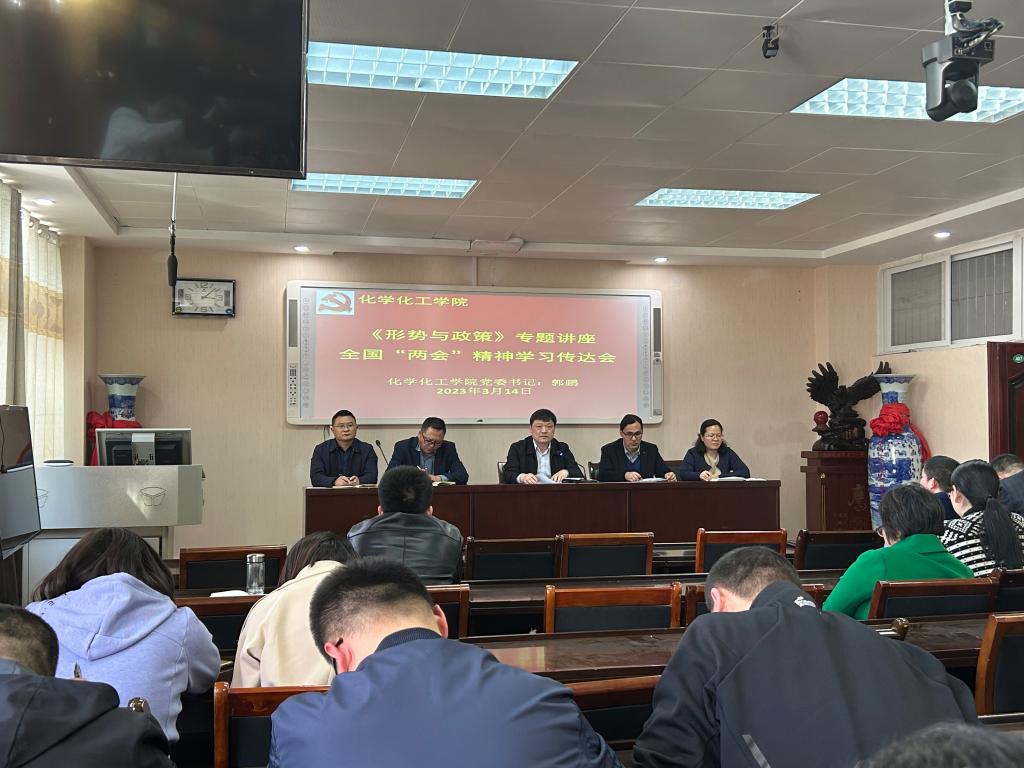 草长莺飞、春暖花开,三月春天里,全国政协十四届一次会议、第十四届全国人大一次会议分别于4日、5日在北京召开,并已圆满胜利闭幕。为进一步深入学习贯彻“两会”精神,3月14日下午,ok138cn太阳集团529全体教职工在化学实验楼407报告厅开展《学习传达全国“两会”精神》形势政策学习。形式政策课由党委书记郭鹏主讲。