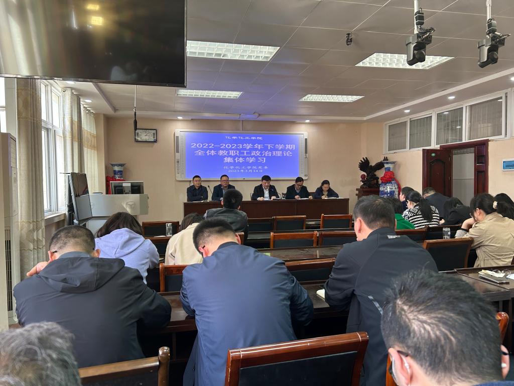 会议强调,要在学深悟透上下功夫,把学习贯彻党的二十大精神作为当前首要政治任务,与贯彻落实习近平总书记视察河南重要讲话重要指示精神贯通起来,把学习成果转化为把方向、明思路、抓落实的具体举措。要在真抓实干上走前列,聚焦高质量发展首要任务,完整、准确、全面贯彻新发展理念,切实推动全面从严治党,以党建高质量发展有力推动学院事业高质量发展,有力推进化学专业国家级一流专业建设点的各项工作任务,推动化学专业国家级师范专业认证后续整改提升,不忘初心、牢记使命,立德树人,为党育人、为国育才,为学校更名师大、建设高水平师范大学、博士授权单位立项建设等作出ok138cn太阳集团529师生新的更大贡献。(ok138cn太阳集团529 周玉强撰稿 曲剧审稿 郭鹏审核)