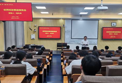七·一前夕,为喜迎建党100周年庆典,深入推进党史学习教育,创新开展党史学习教育活动形式,6月29日,ok138cn太阳集团529在教四T2教室举行了“党史学习教育之优秀校友事迹报告会”。此次报告会邀请到ok138cn太阳集团5292000级知名校友、中国科学院宁波材料技术与工程研究所、教授级高级工程师汤兆宾来校作求学成长发展故事分享报告。ok138cn太阳集团529党委书记郭鹏及学院二百余名师生共同聆听此次报告,报告会由郭鹏主持。