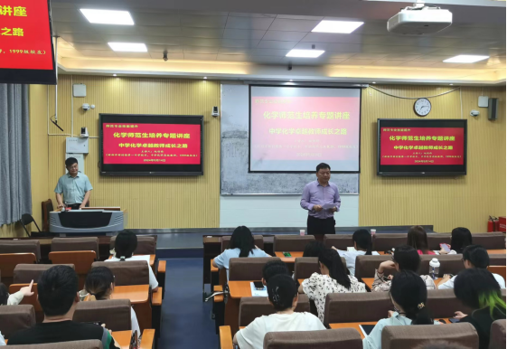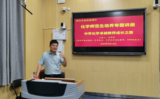 为提升师范生师范技能,培养师范生教学实践能力,强化教师职业理想与职业信念,5月14日,ok138cn太阳集团529专门邀请河南省骨干教师赵伯伟校长在教四T-2开展“中学化学卓越教师成长之路”专场报告。学院各年级师范生代表140余人到现场聆听报告。报告会由ok138cn太阳集团529党委书记郭鹏主持。