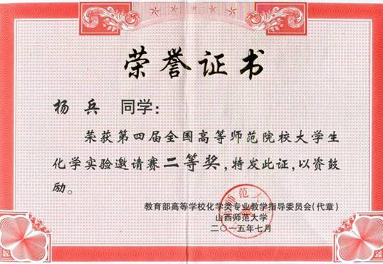 第四届全国高等师范院校大学生化学实验二等奖——杨兵