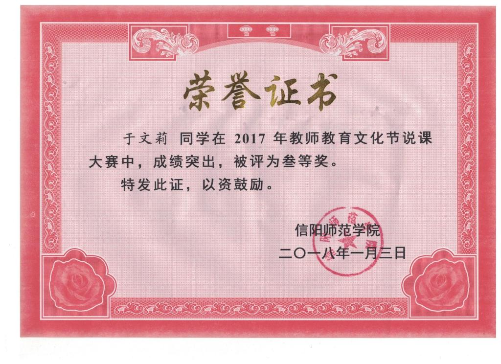 2017年教师教育文化节说课大赛叁等奖——于文莉